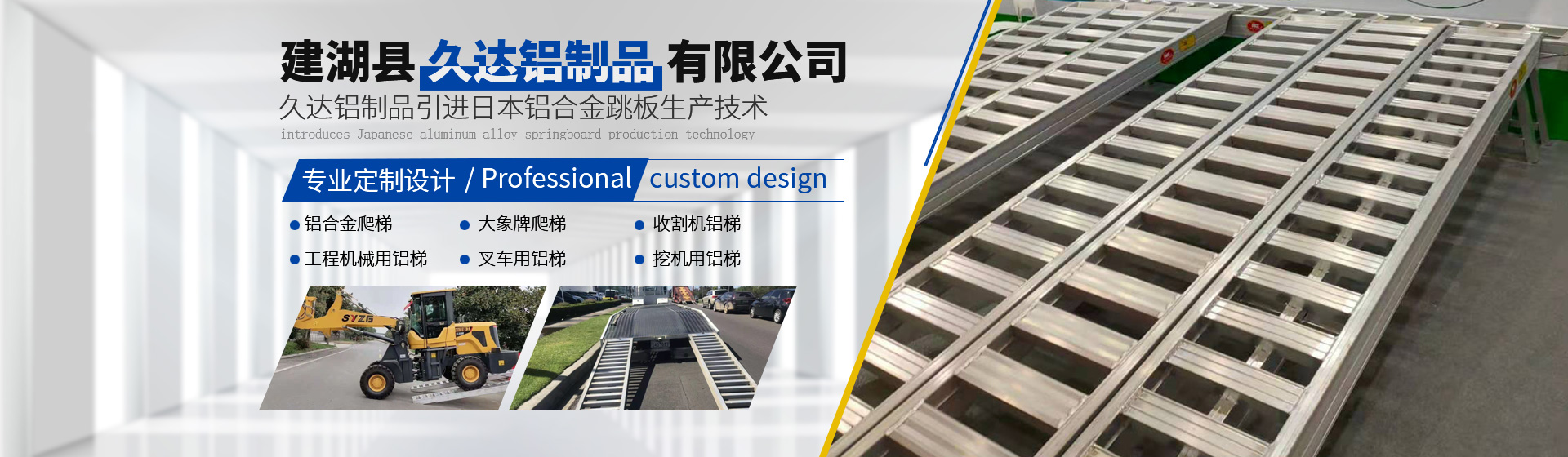 建湖縣久達(dá)鋁制品有限公司引進(jìn)日本鋁合金跳板生產(chǎn)技術(shù),專業(yè)生產(chǎn)高強(qiáng)度鋁合金跳板,廣泛應(yīng)用于聯(lián)合收割機(jī)、拖拉機(jī)、插秧機(jī)、挖掘機(jī)等機(jī)械。 我公司于2012年引進(jìn)日本全鋁合金跳板生產(chǎn)技術(shù)。經(jīng)過四年的學(xué)習(xí)、探索、生產(chǎn)、銷售,現(xiàn)已全面消化吸收鋁合金跳板技術(shù)、總結(jié)出一套成熟的生產(chǎn)、使用、售后服務(wù)經(jīng)驗(yàn);為提高產(chǎn)品質(zhì)量,加大設(shè)備投入,購買歐洲進(jìn)口的鋁合金焊接設(shè)備和切割設(shè)備,保證產(chǎn)品的焊接強(qiáng)度和精度;結(jié)合中國收割機(jī)作業(yè)量大、作業(yè)條件復(fù)雜、中國收割機(jī)更重等特點(diǎn),生產(chǎn)出更適合中國國情的高強(qiáng)度鋁合金跳板,承載力更強(qiáng),抗疲勞效果更好,使用周期更長,同等使用條件下是市場上仿制產(chǎn)品使用壽命的1.5倍以上。大象牌鋁梯成為中國鋁梯行業(yè)馳名品牌。